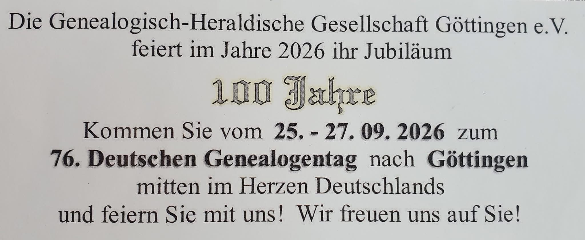 Du bist hier: Startseite1 / Familienforschung2 / Deutscher Genealogentag3 / Göttingen 2026 (76.)